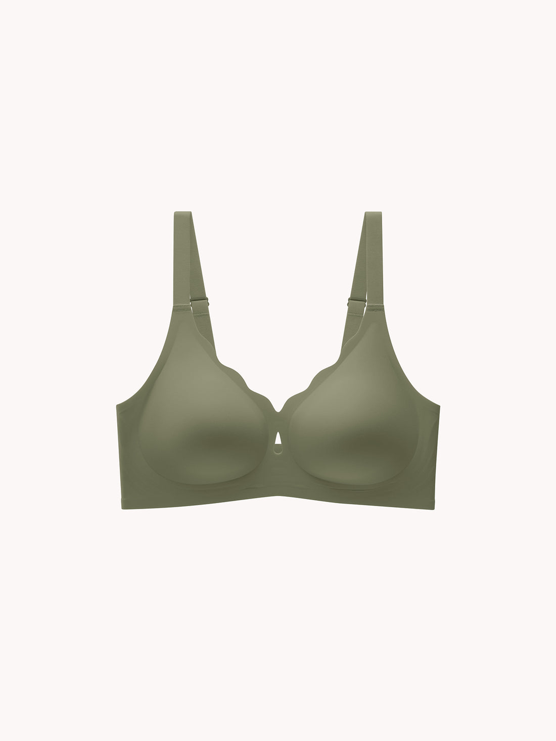 Smooth. Sculpted. Effortlessly Elegant. This seamless wireless bra features a wavy-edge deep V design that...